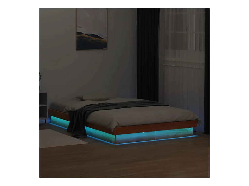 Lit double à LED cire marron 120x190 cm bois de pin massif FR96723