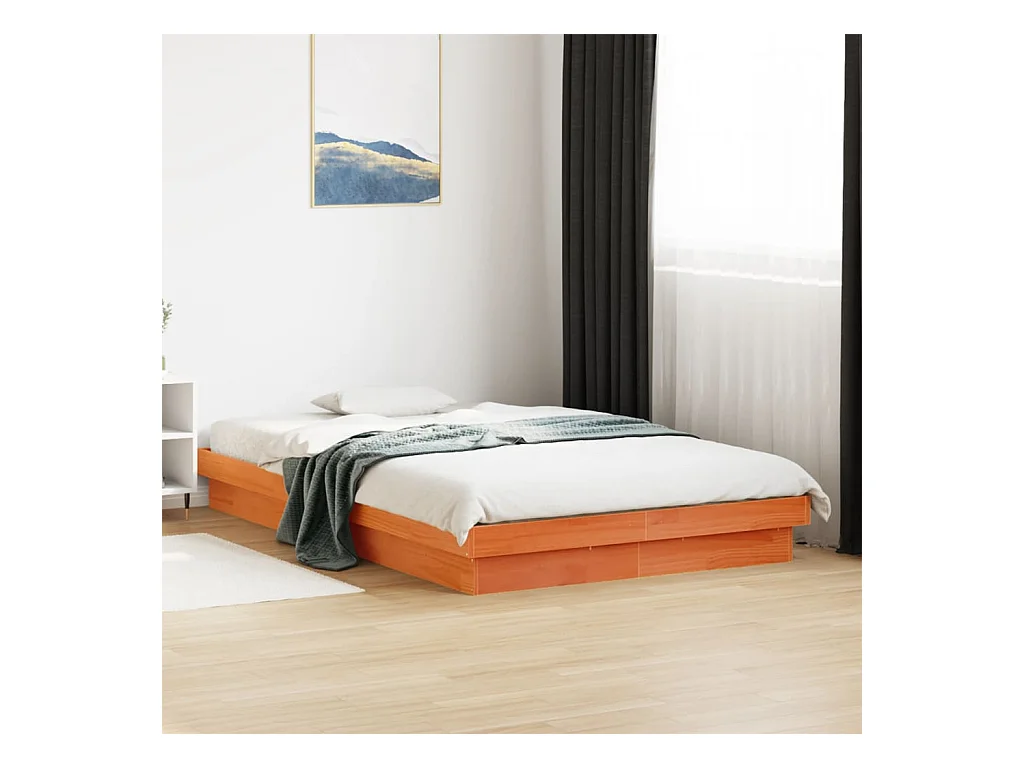 Lit double à LED cire marron 135x190 cm bois de pin massif FR38597