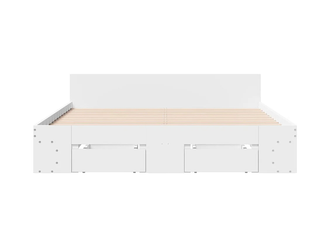 Lit double à tiroirs blanc 160x200cm bois d'ingénierie FR52994