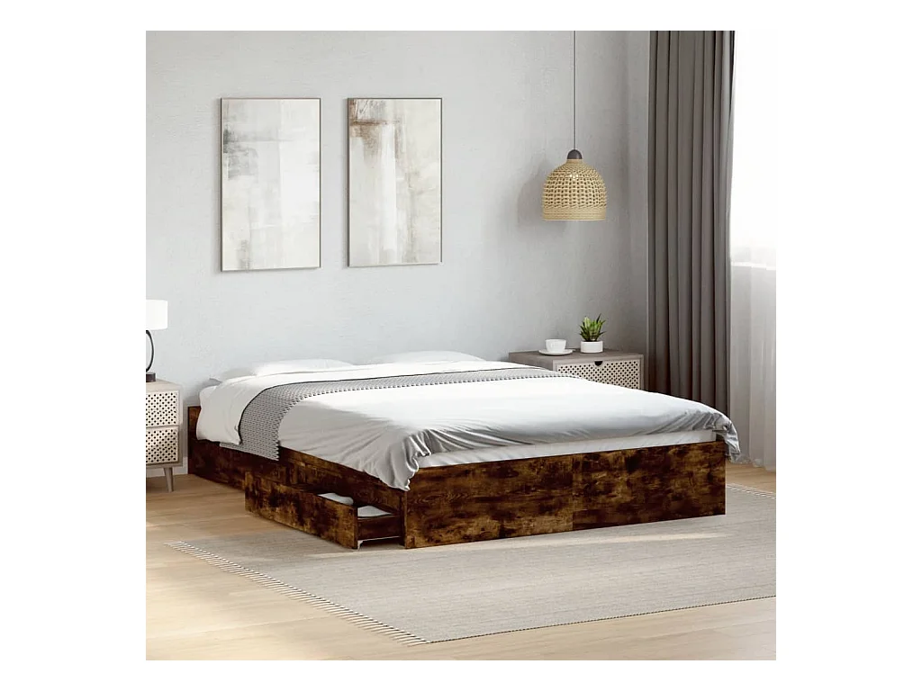 Lit double à tiroirs chêne fumé 135x190 cm bois d'ingénierie FR59183