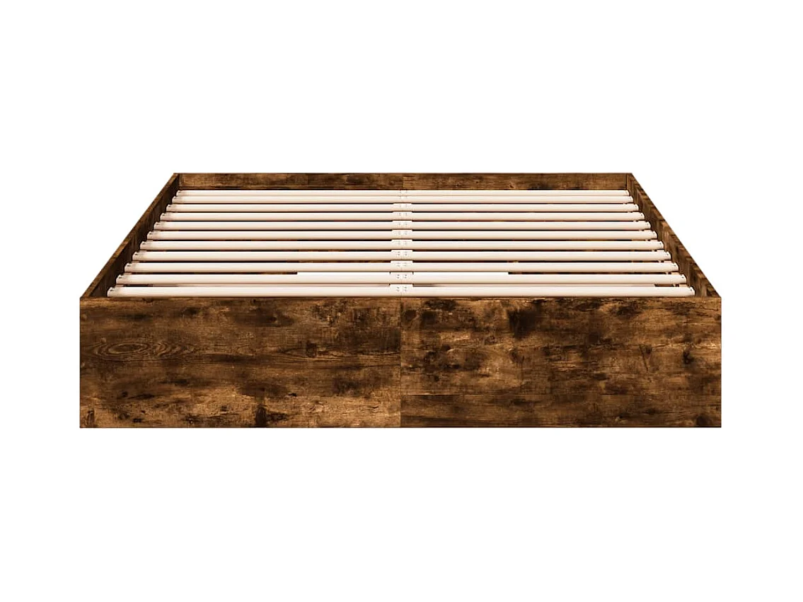Lit double chêne fumé 135x190 cm bois d'ingénierie et métal FR63848