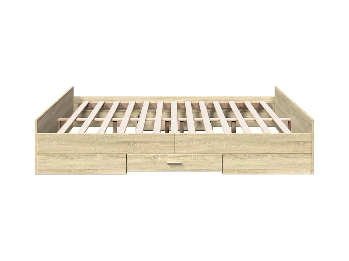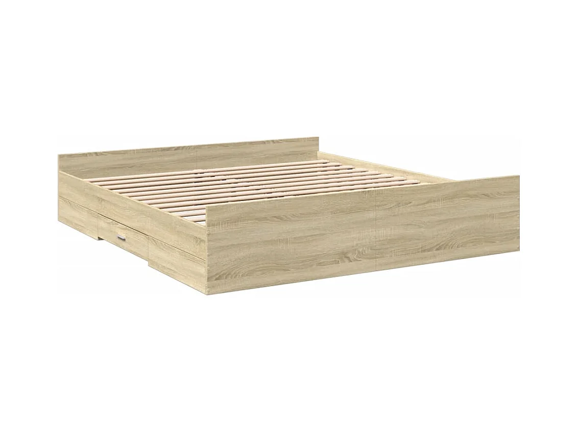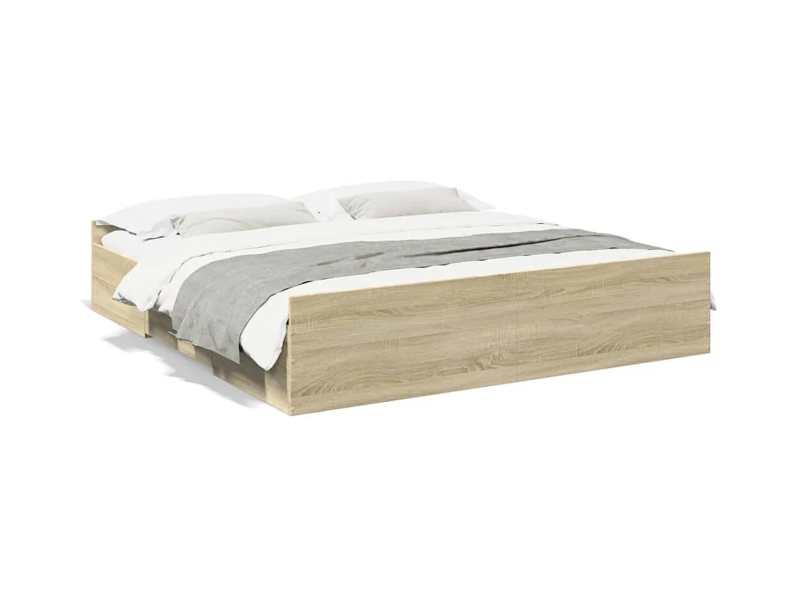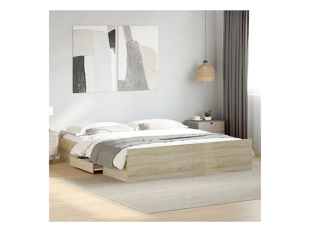 Lit double à tiroirs chêne sonoma 180x200cm bois d'ingénierie FR24001