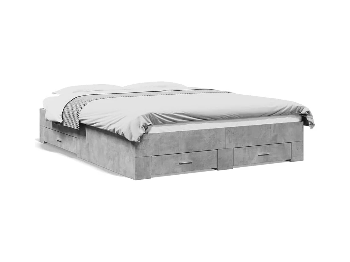 Lit double à tiroirs gris béton 160x200 cm bois d'ingénierie FR99464