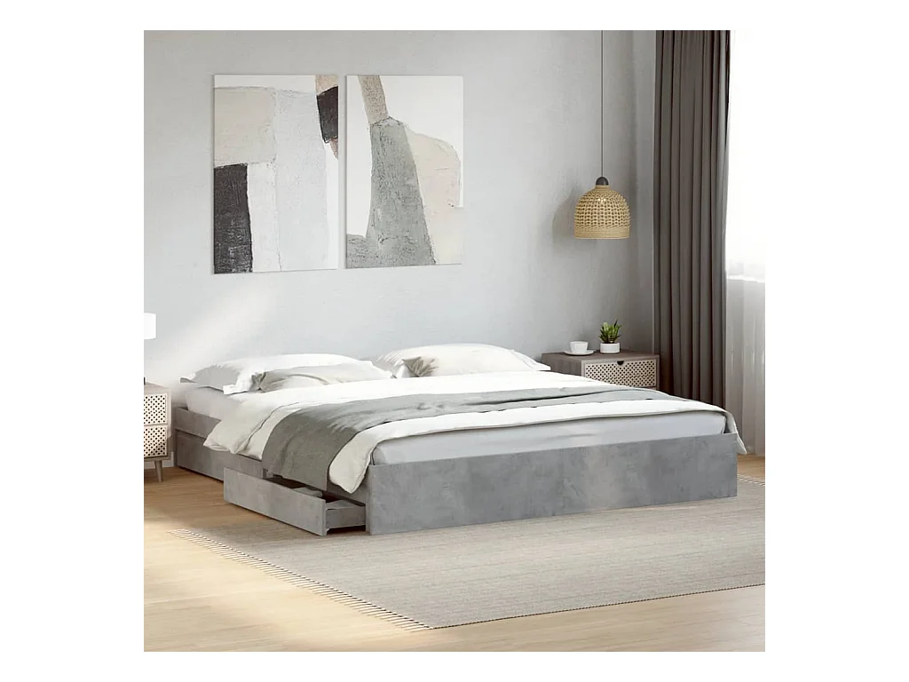 Lit double à tiroirs gris béton 180x200 cm bois d'ingénierie FR53037