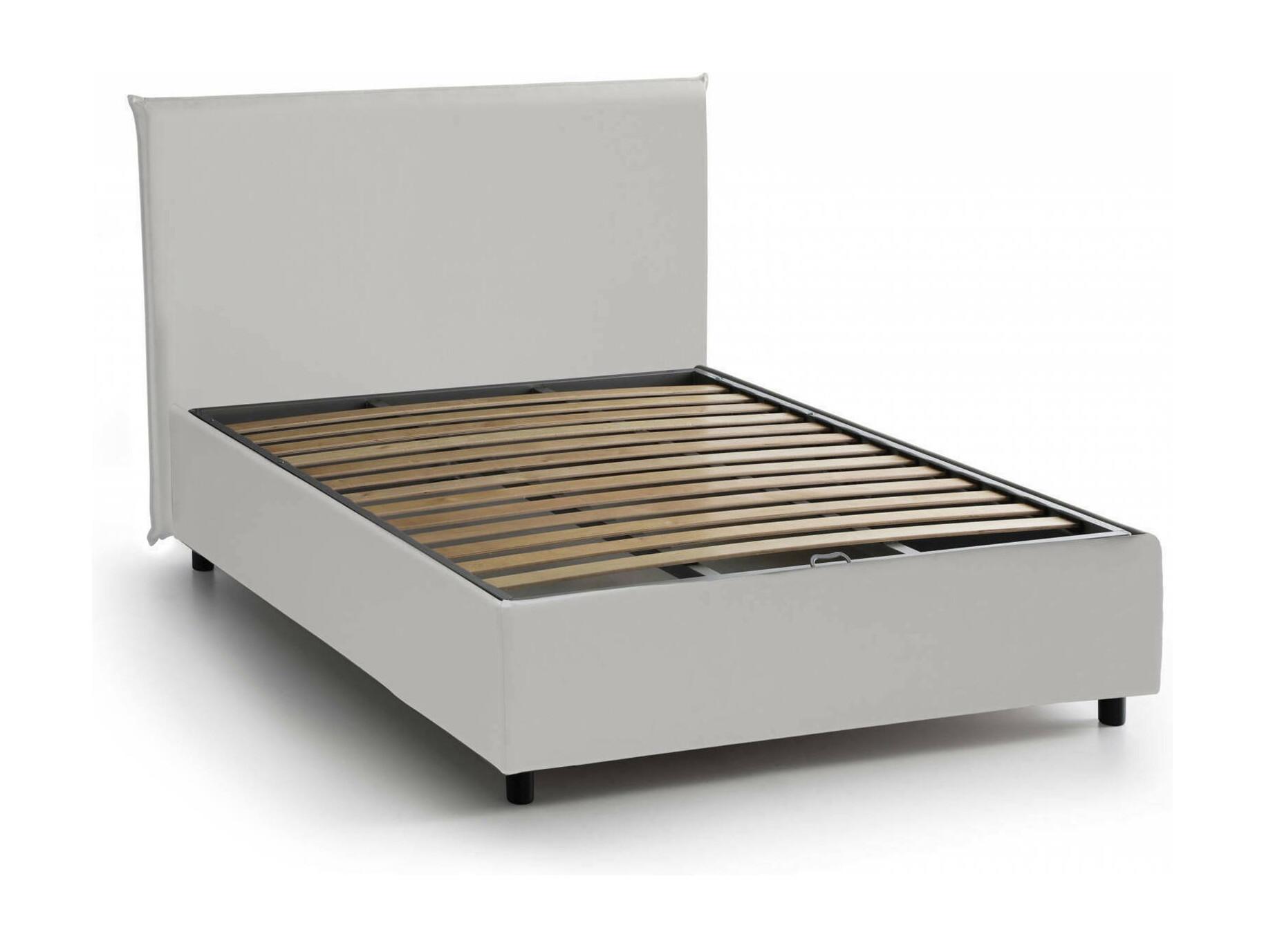 Lit double Assia, lit coffre avec revêtement en éco-cuir, 100% Made in Italy, ouverture frontale, adapté pour matelas 120x200 cm, blanc