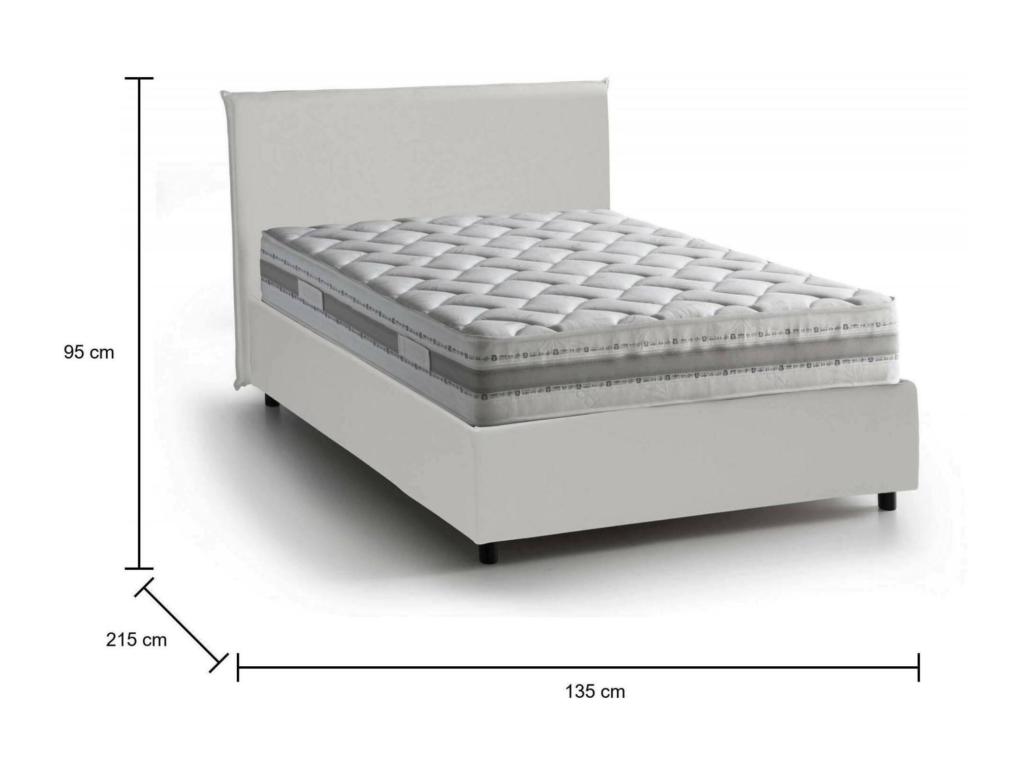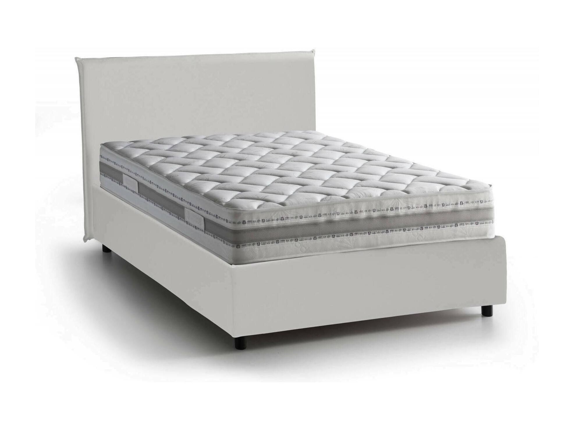 Lit double Assunta, lit coffre avec revêtement en éco-cuir, 100% Made in Italy, ouverture frontale, avec matelas 120x200 cm inclus, Blanc