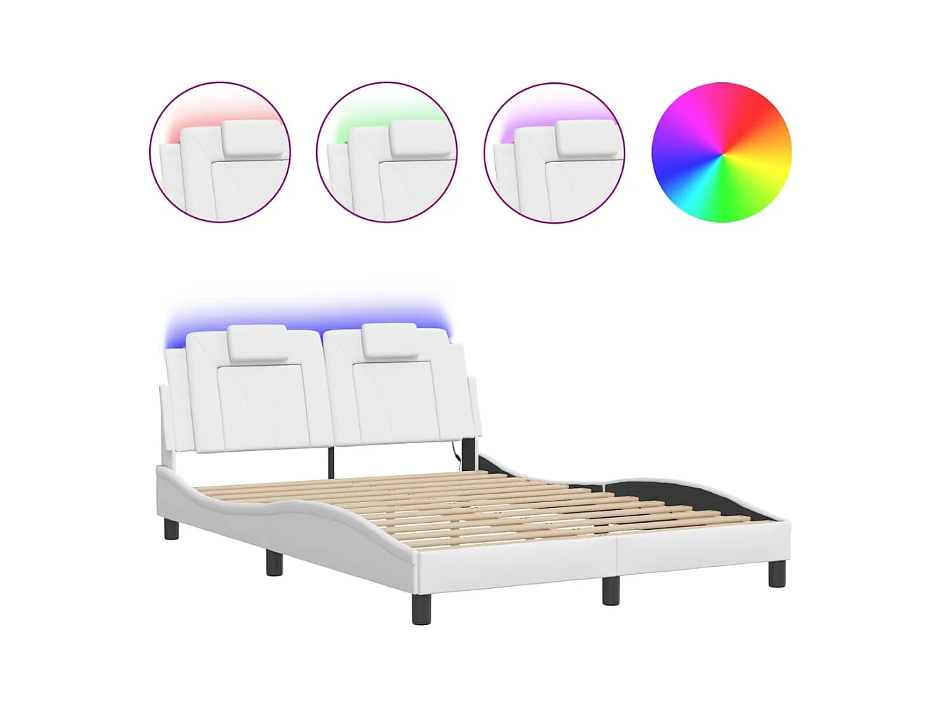 Lit double avec lumières LED blanc 140x200 cm similicuir FR28965