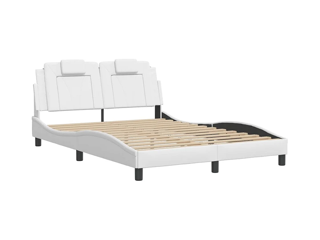 Lit double + tête de lit Blanc 140x200 cm Similicuir FR34086