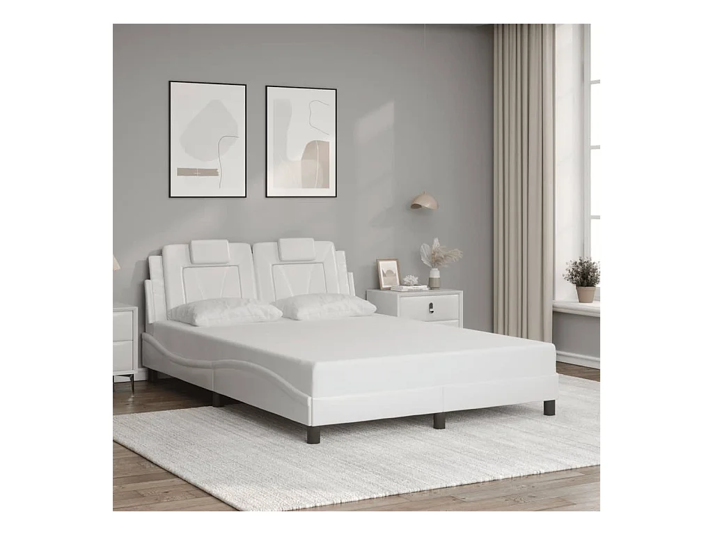 Lit double + tête de lit Blanc 140x200 cm Similicuir FR42745