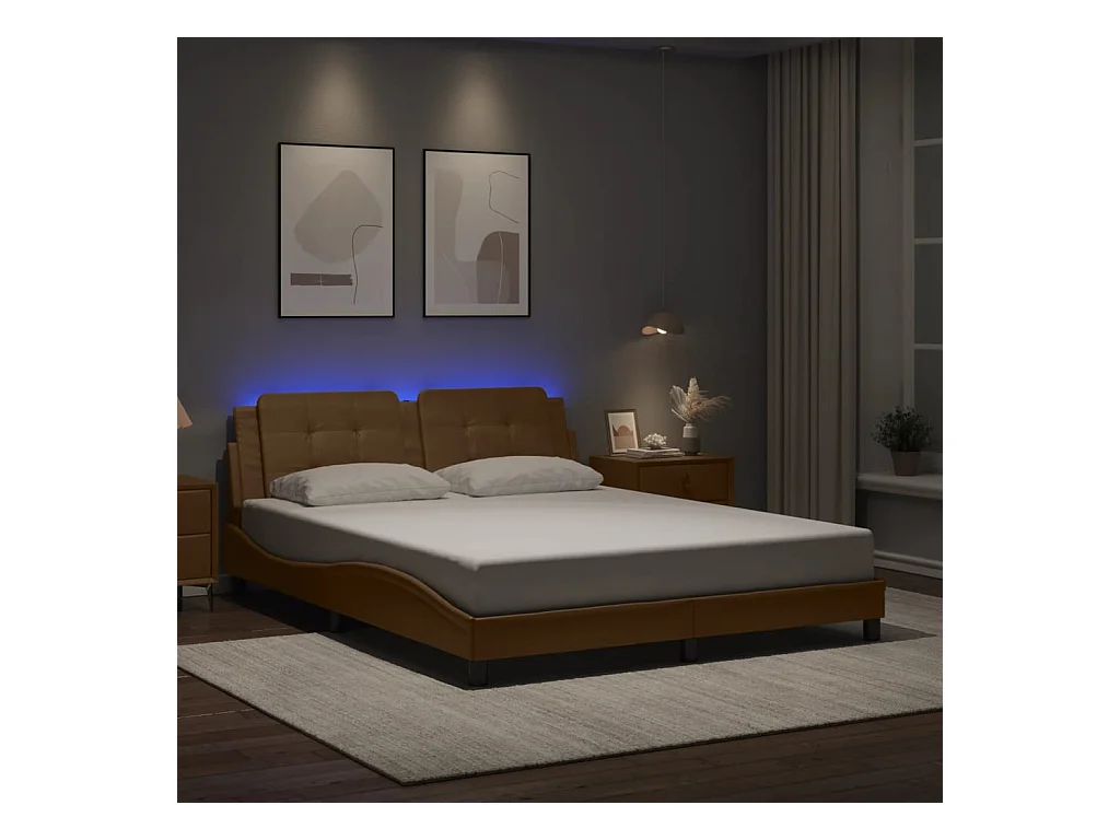 Lit double avec lumières LED marron 160x200 cm similicuir FR13728