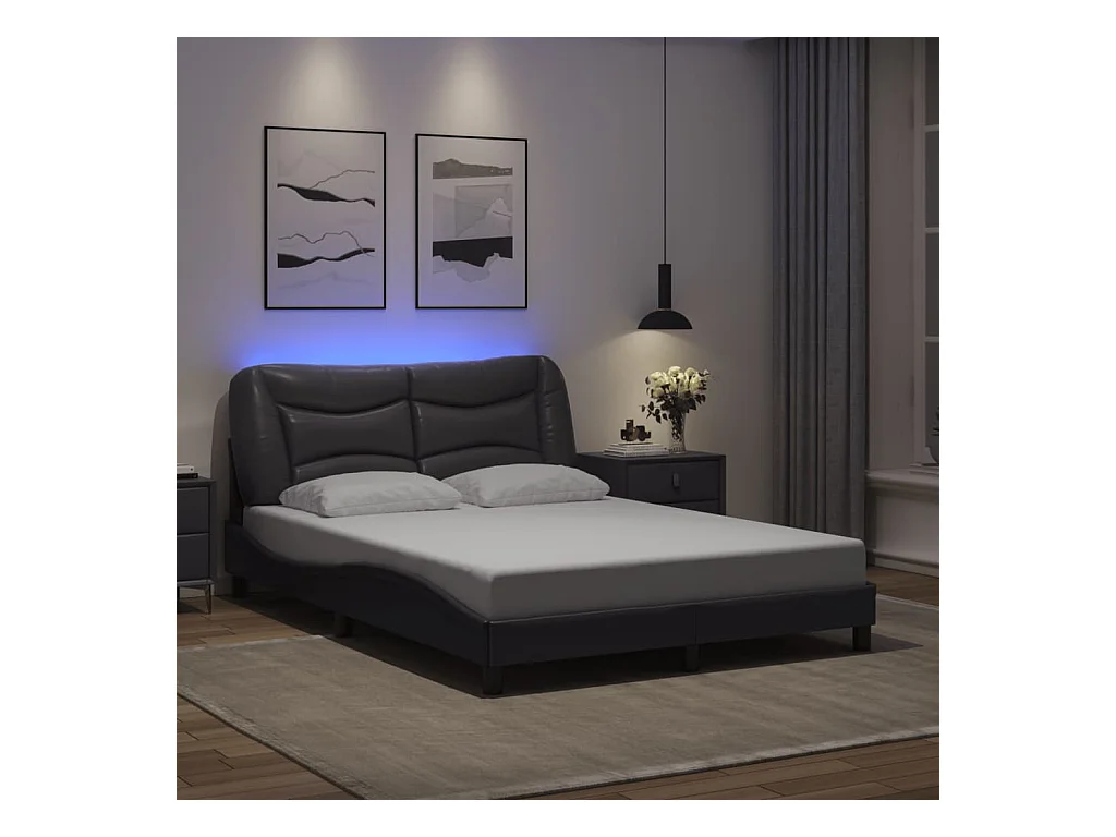 Lit double avec lumières LED gris 120x200 cm similicuir FR28654