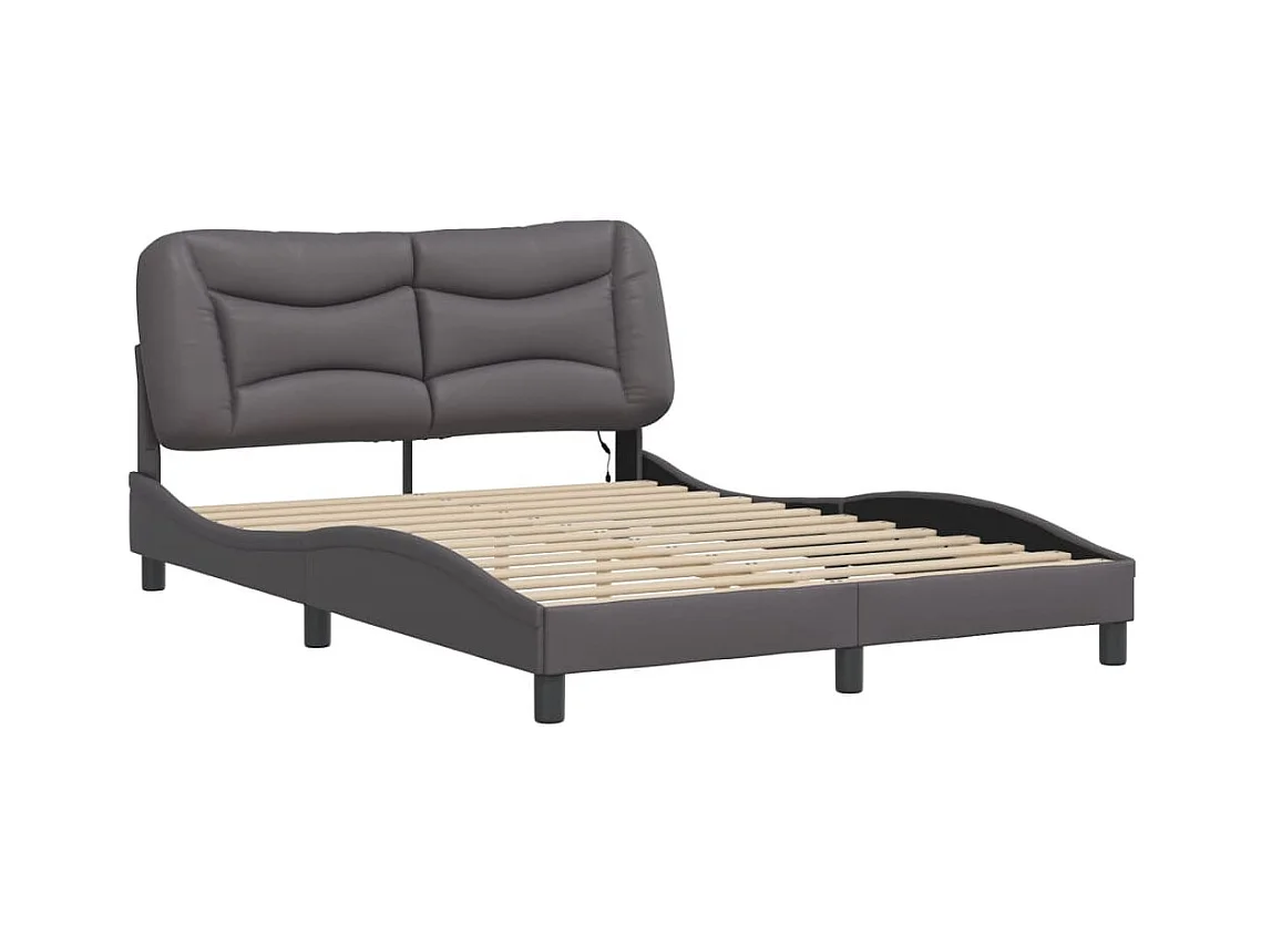 Lit double avec lumières LED gris 140x200 cm similicuir FR18262