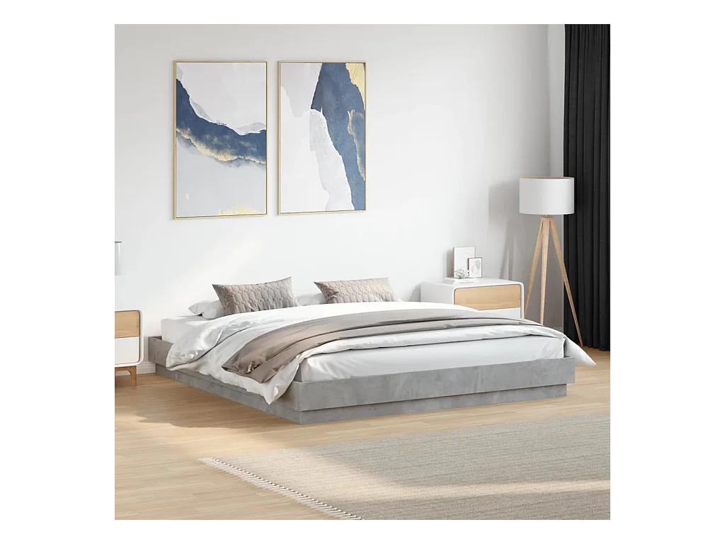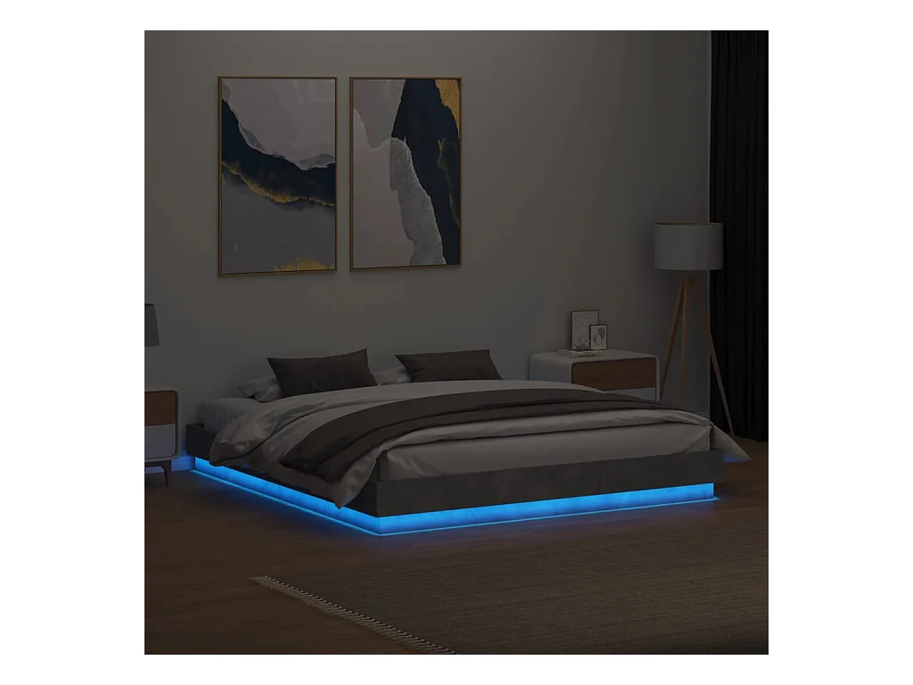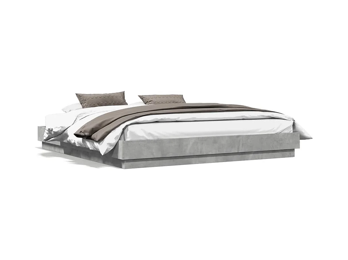 Lit double avec lumières LED gris béton 200x200 cm FR54030