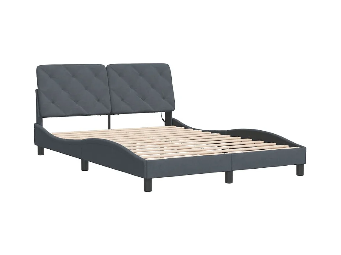 Lit double avec lumières LED gris foncé 120x200 cm velours FR15052
