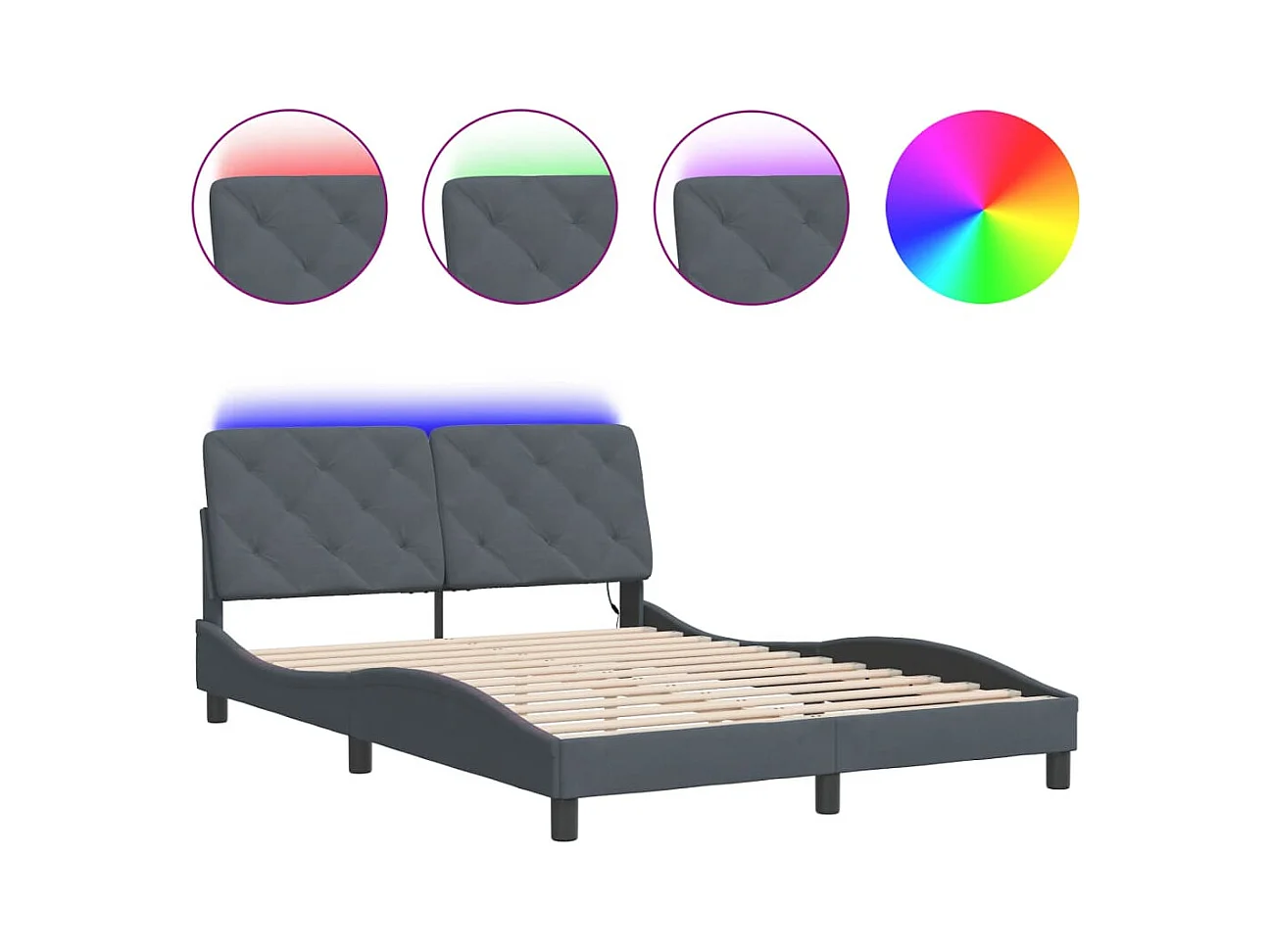Lit double avec lumières LED gris foncé 140x190 cm velours FR71366