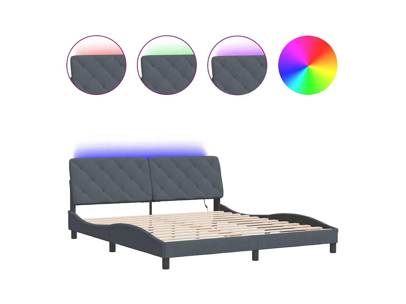 Lit double avec lumières LED gris foncé 180x200 cm velours FR64344