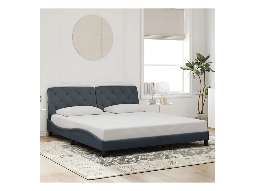 Lit double + tête de lit Gris foncé 180x200 cm Velours FR69356