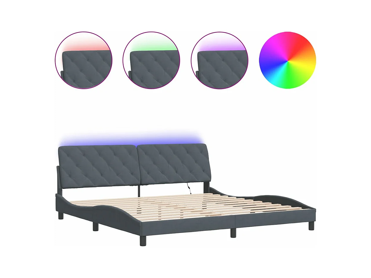 Lit double avec lumières LED gris foncé 200x200 cm velours FR31186