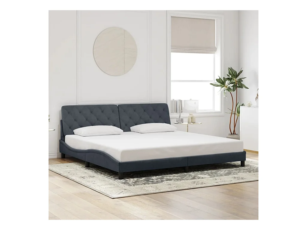 Lit double + tête de lit Gris foncé 200x200 cm Velours FR86617