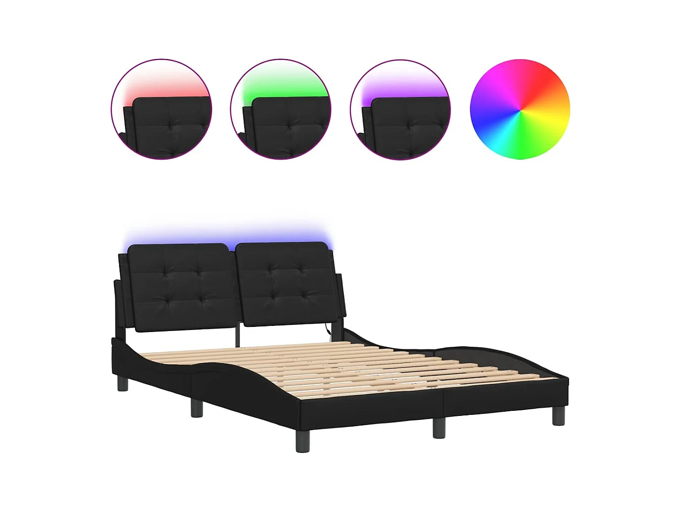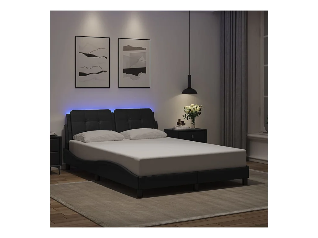 Lit double avec lumières LED noir 120x200 cm similicuir FR73001
