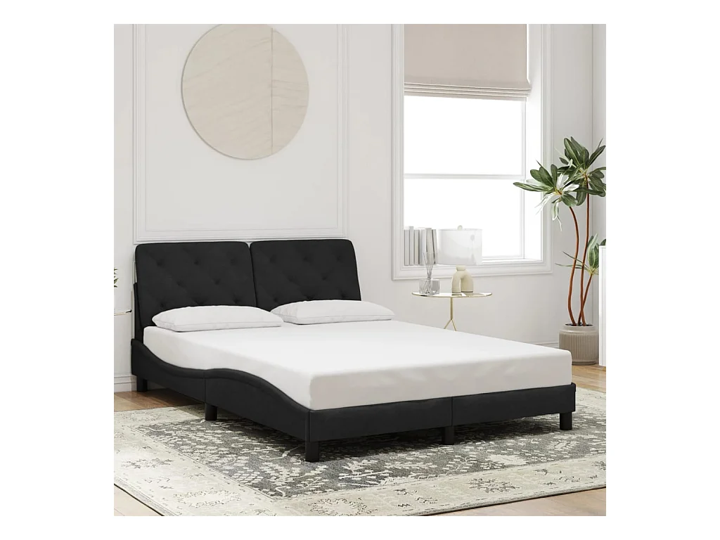 Lit double + tête de lit Noir 140x200 cm Velours FR17895