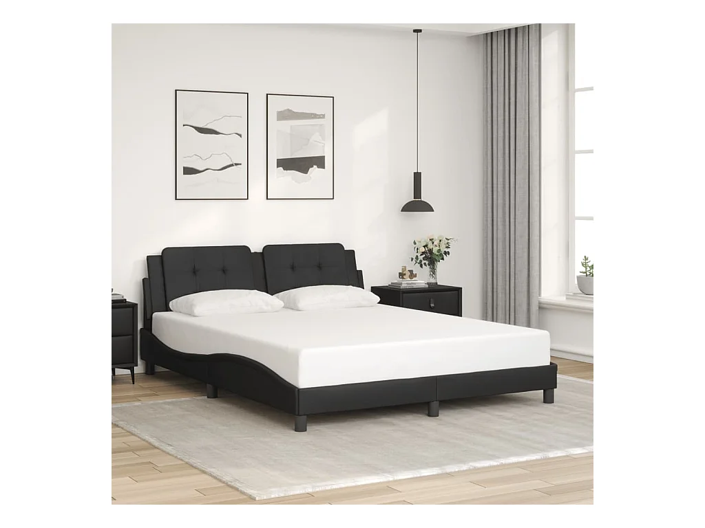Lit double avec lumières LED noir 160x200 cm similicuir FR67849