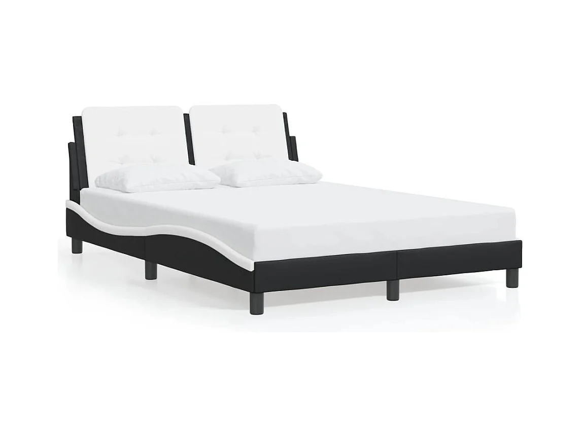 Lit double et tête de lit noir et blanc 120x200 cm similicuir FR13739