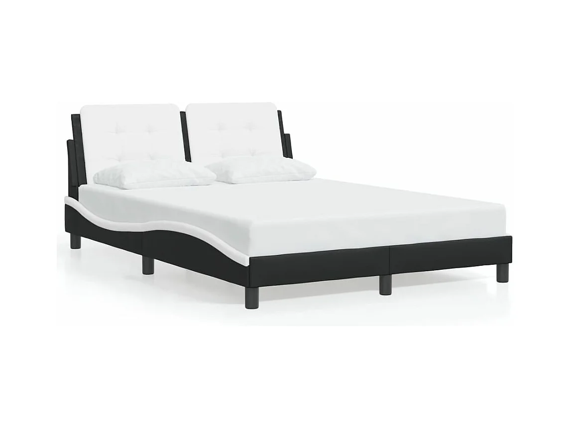Lit double et tête de lit noir et blanc 140x200 cm similicuir FR69263