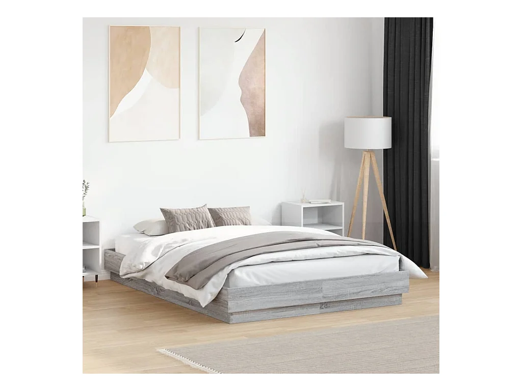 Lit double sonoma gris 120x190 cm bois d'ingénierie FR23530