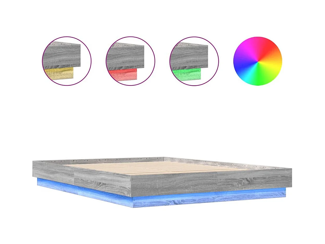 Lit double avec lumières LED sonoma gris 150x200 cm FR21675