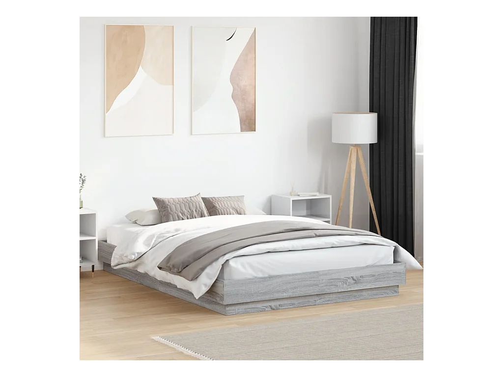 Lit double avec lumières LED sonoma gris 150x200 cm FR85804