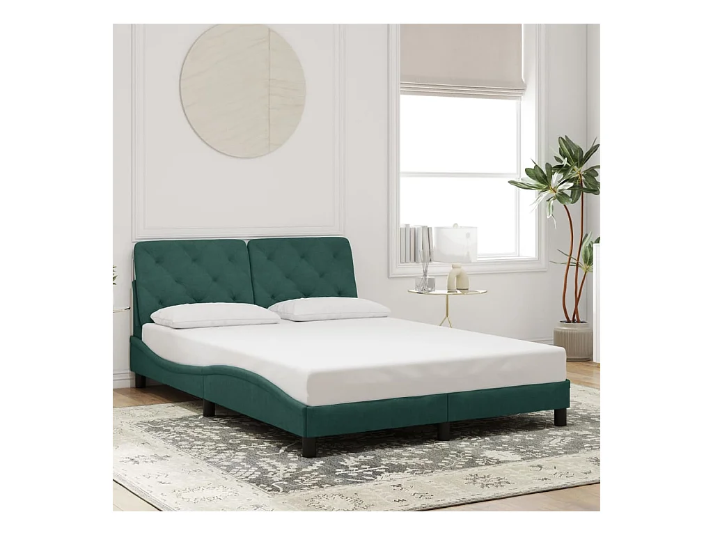 Lit adulte avec tête de lit Vert foncé 140x200 cm Velours FR564407