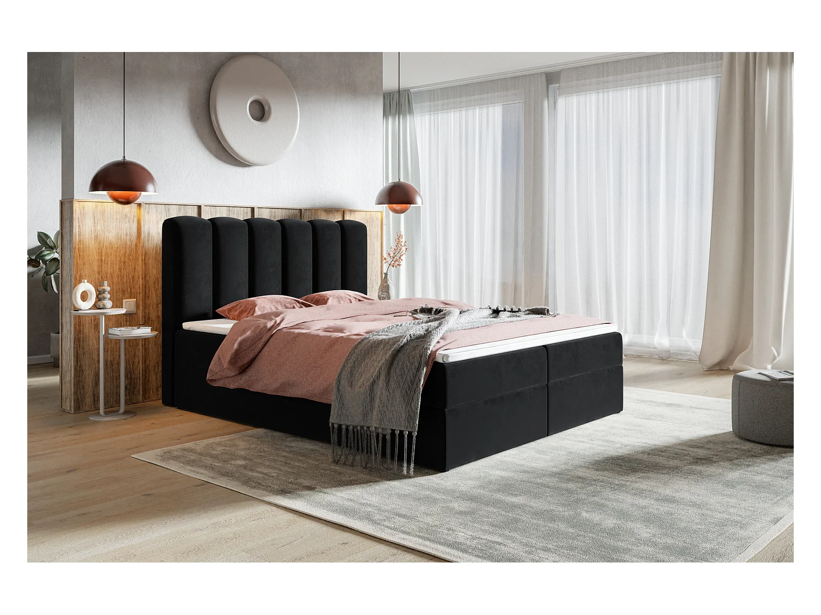 Lit boxspring CLAUDINE avec 2 coffres de rangement, lit rembourré Dimensions: 180x200, couleur: noir, tissu velours