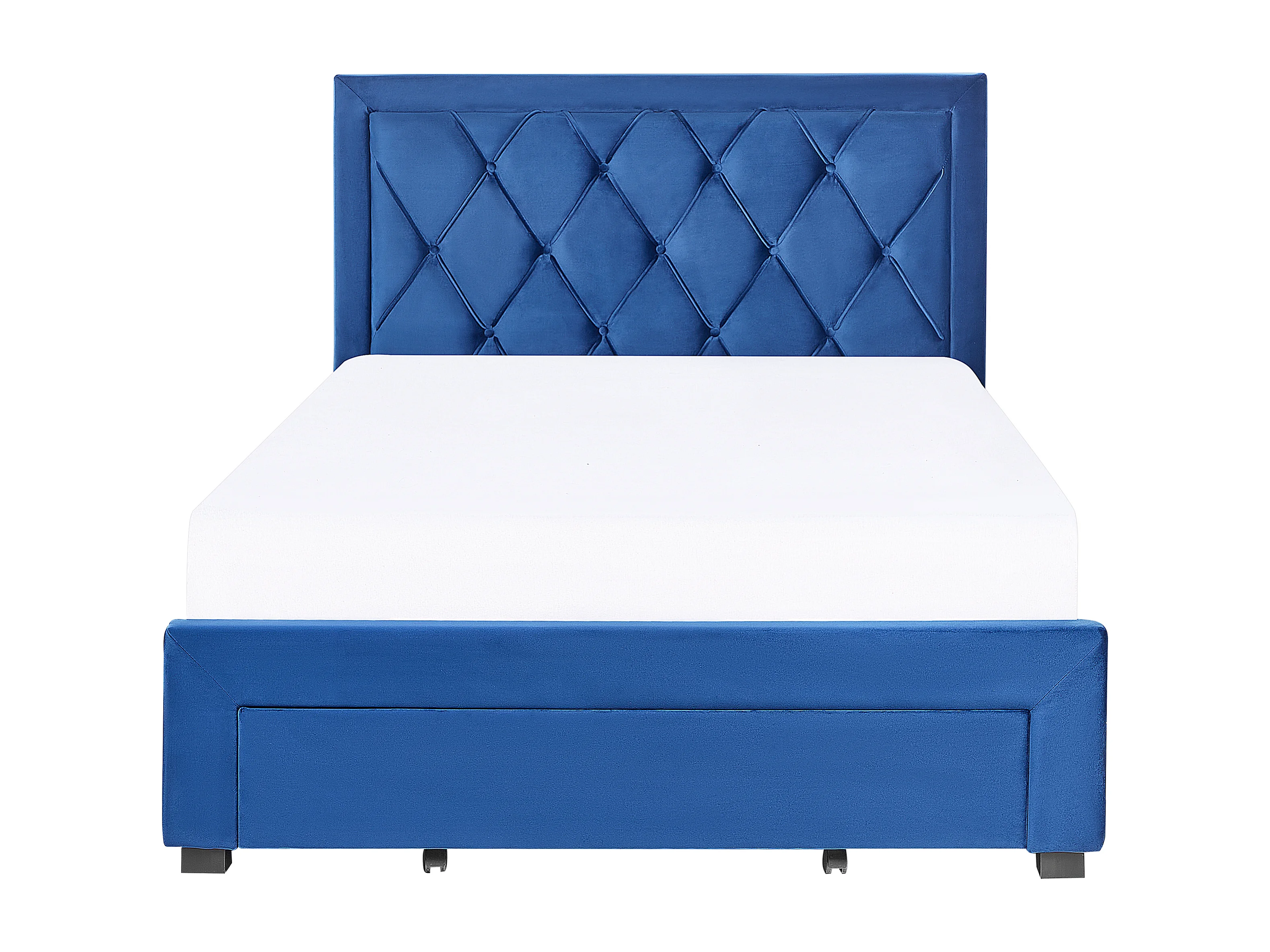 Lit avec tiroirs de rangement Velours LIEVIN 140 x 200 cm Bleu marine