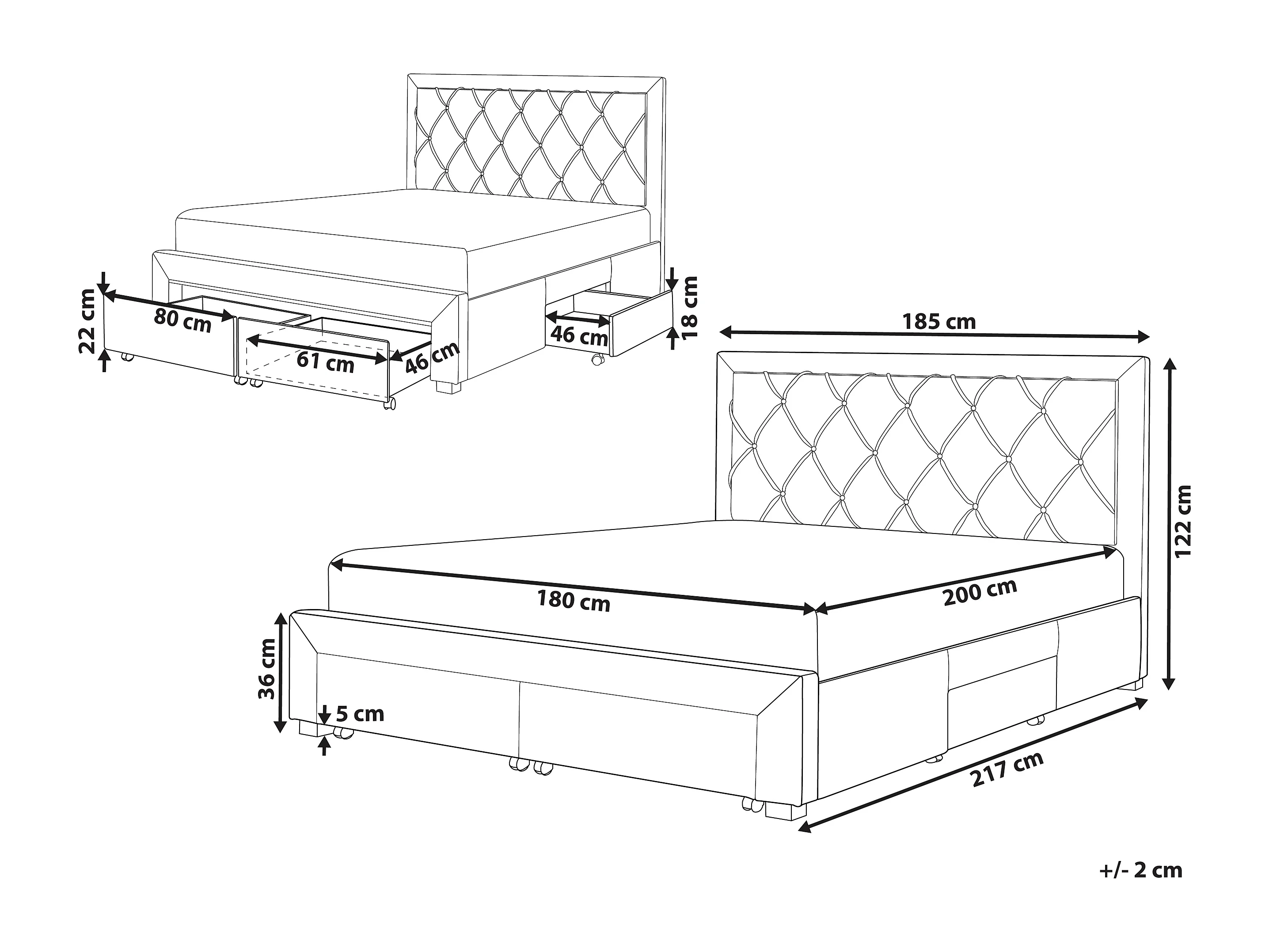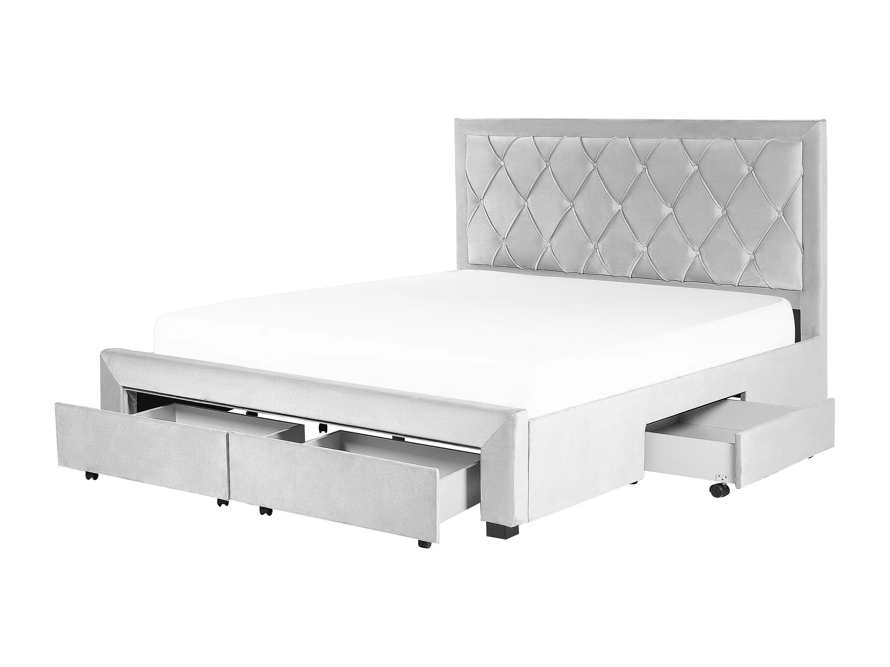 Lit avec tiroirs de rangement Velours LIEVIN 180 x 200 cm Gris clair