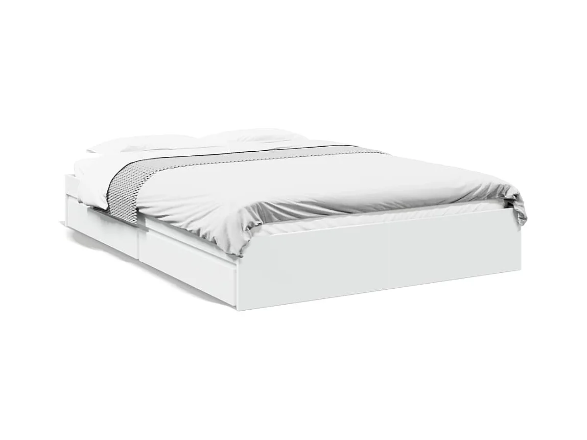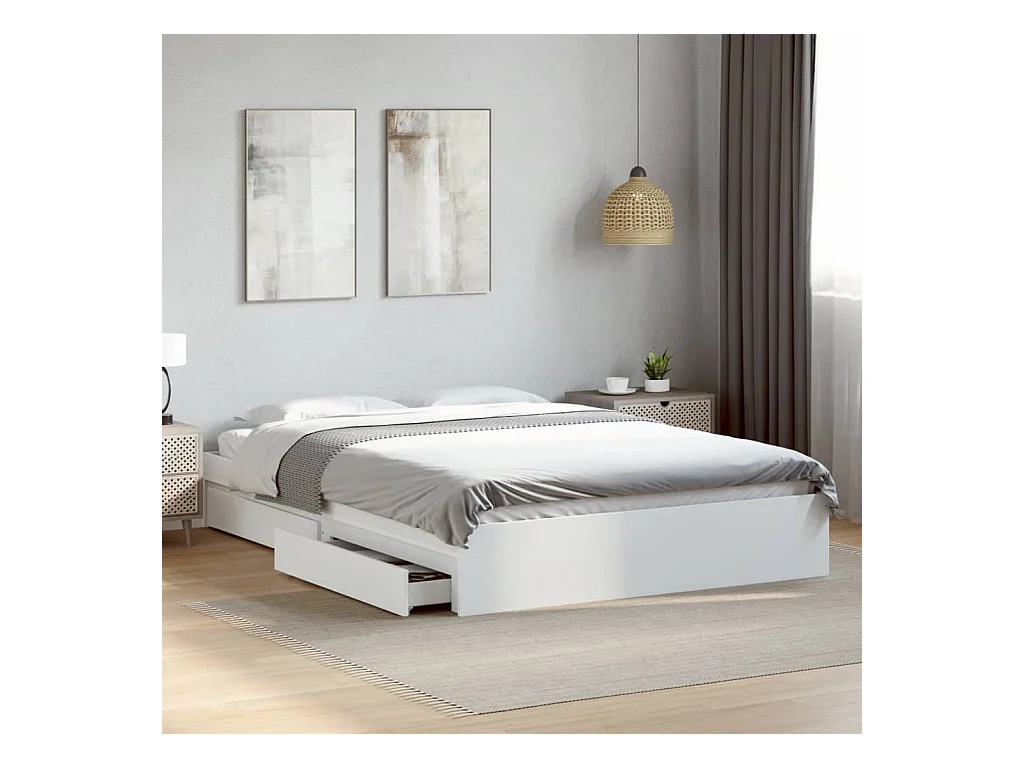 Lit double avec tiroirs blanc 150x200 cm bois d'ingénierie FR41518