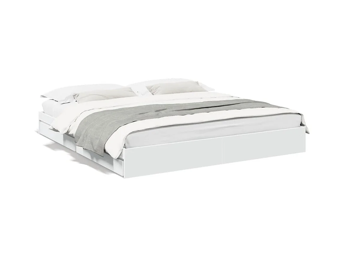 Lit double avec tiroirs blanc 200x200 cm bois d'ingénierie FR11727