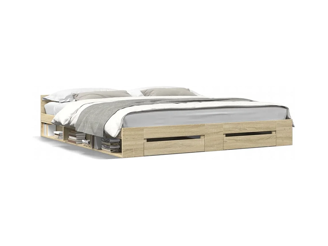 Lit double avec tiroirs chêne sonoma 200x200 cm FR10206