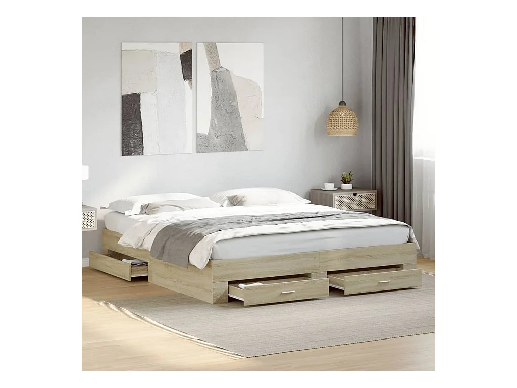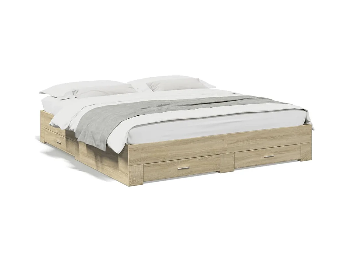 Lit double avec tiroirs chêne sonoma 200x200 cm FR26504
