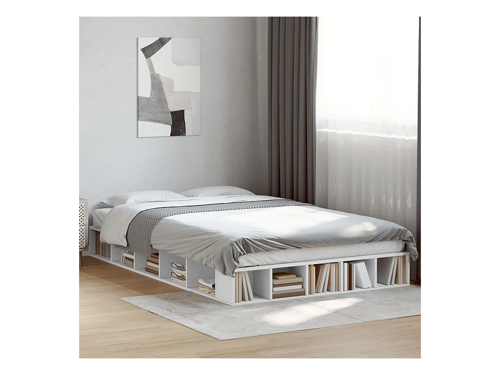Lit double blanc 120x200 cm bois d'ingénierie FR64073