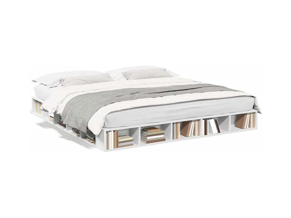 Lit double blanc 200x200 cm bois d'ingénierie FR69496