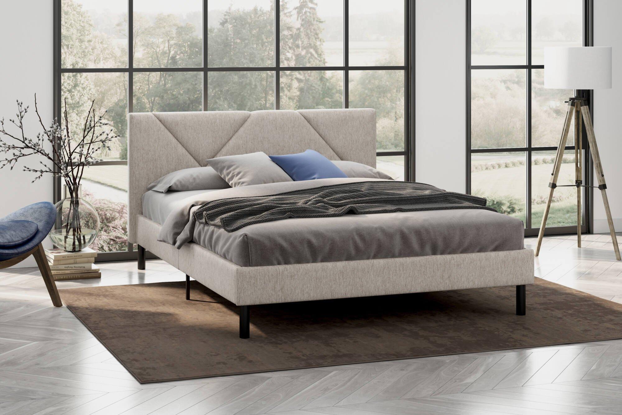 Lit double Calitri, Sommier pour chambre, Literie par chambre, Support de matelas, Adapté à un matelas de 140x190 cm, Beige