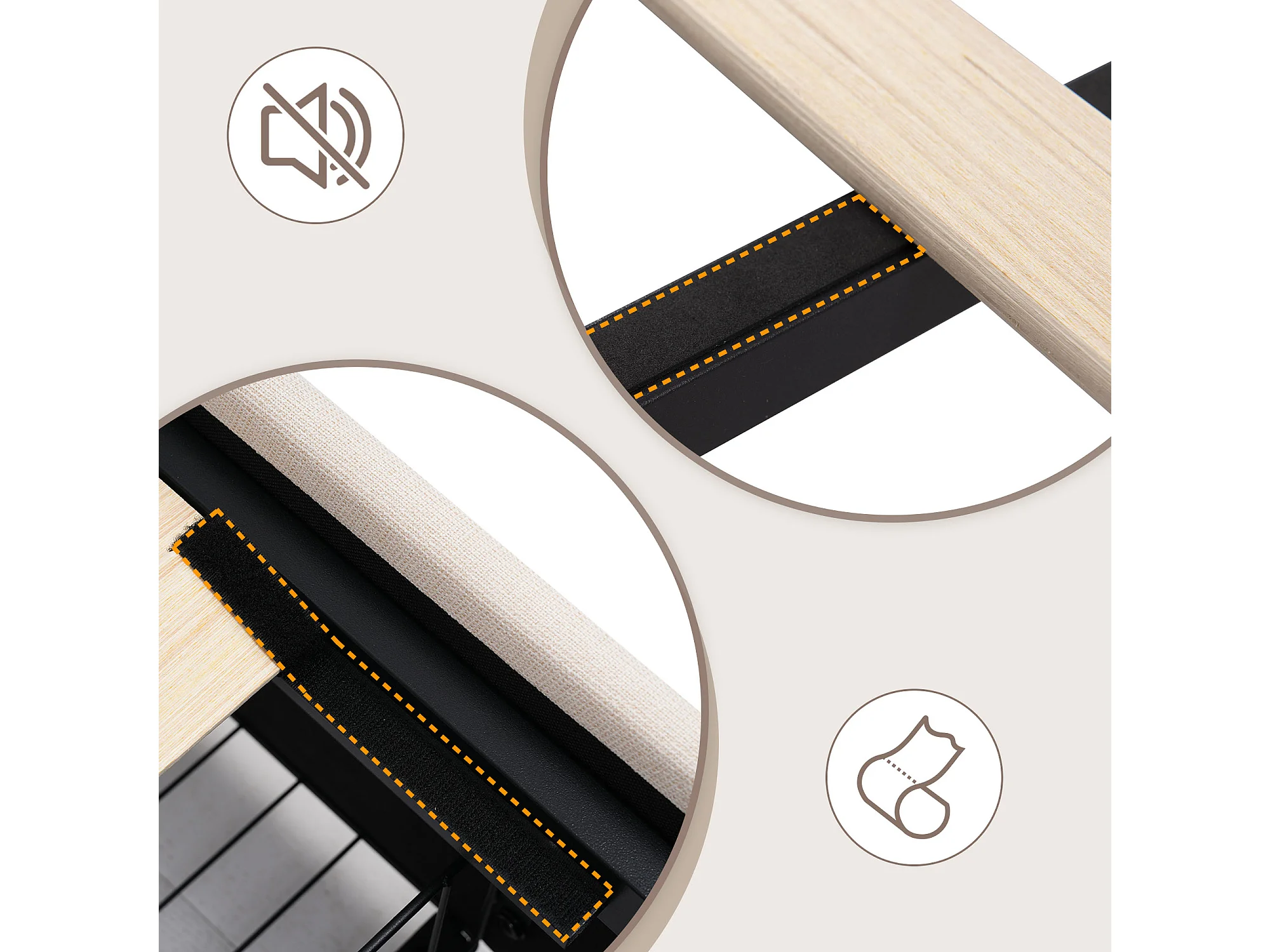 Lit double capitonné - 160 x 200 cm - avec Leds + 4 tiroirs + tête de lit réglable - bois - beige