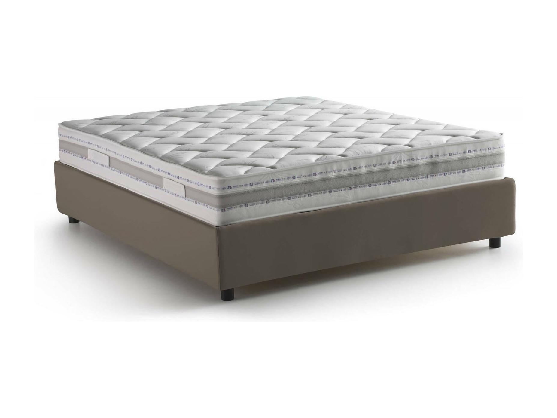Lit double Cecilia, Lit coffre avec revêtement en éco-cuir, 100% Made in Italy, Ouverture frontale, avec matelas 160x190 cm inclus, Taupe