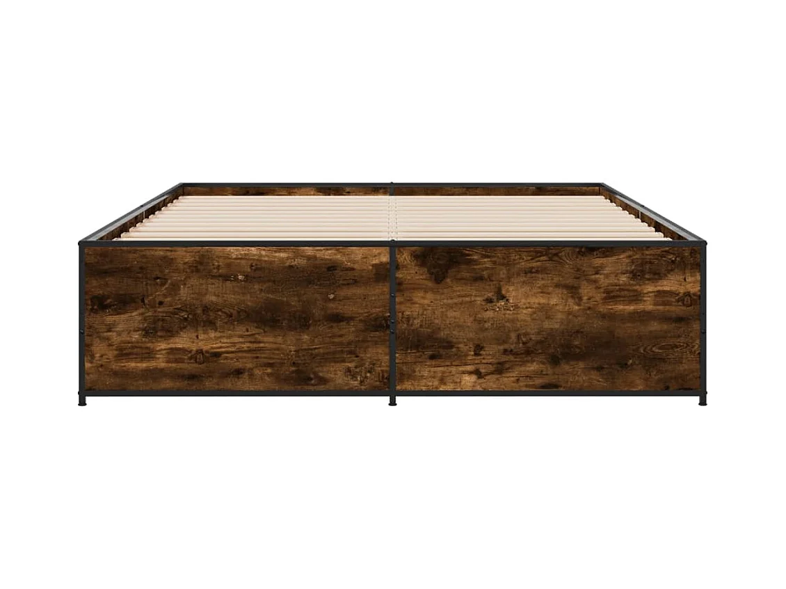 Lit double chêne fumé 140x200 cm bois d'ingénierie et métal FR45240