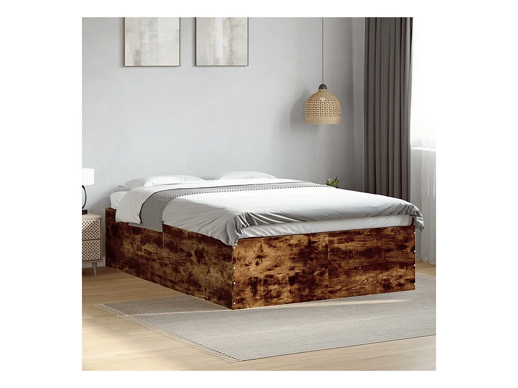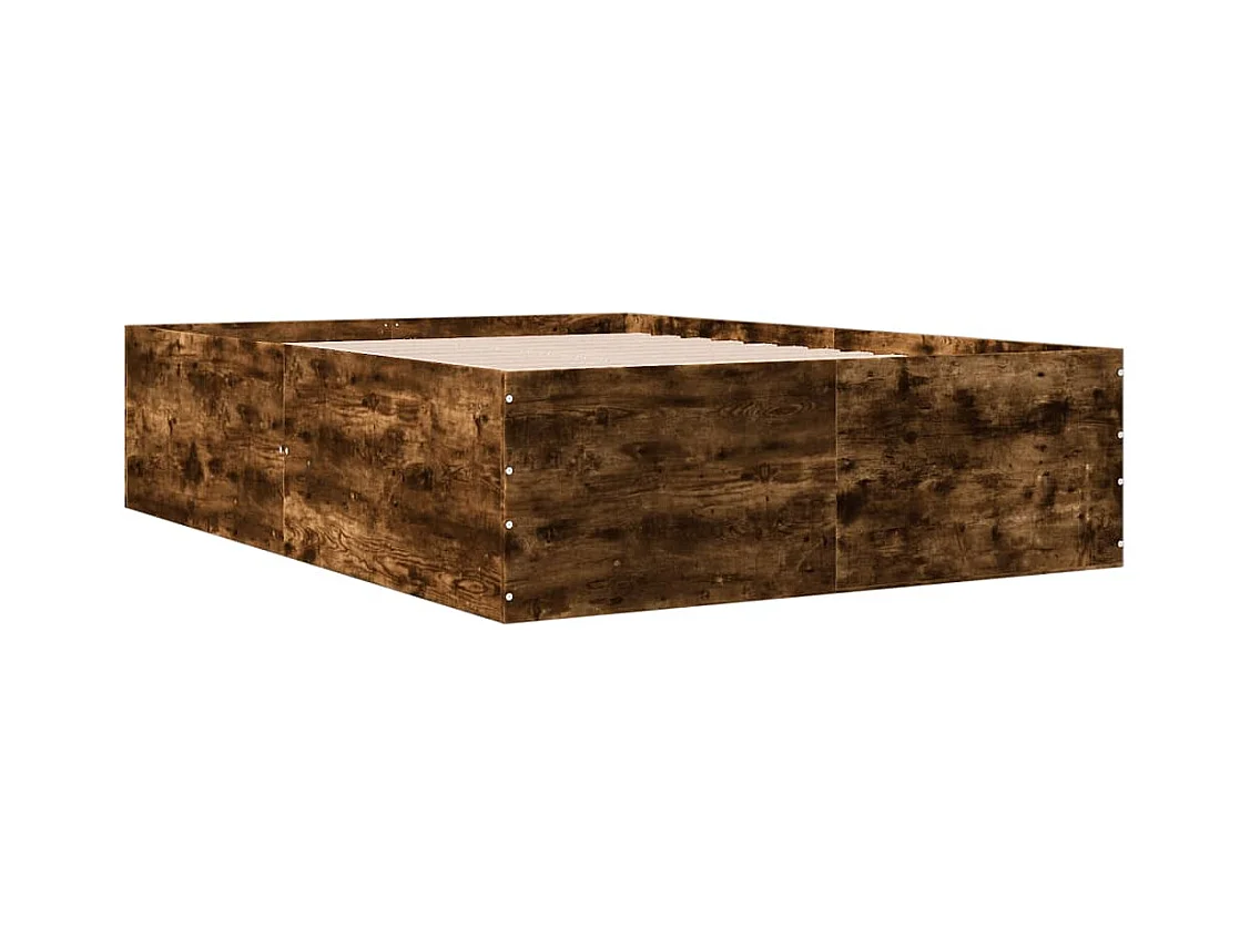 Lit double chêne fumé 140x200 cm bois d'ingénierie FR38590
