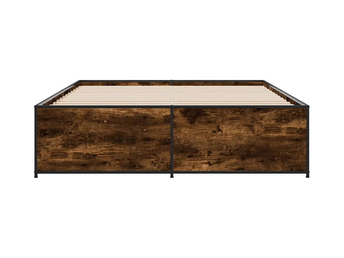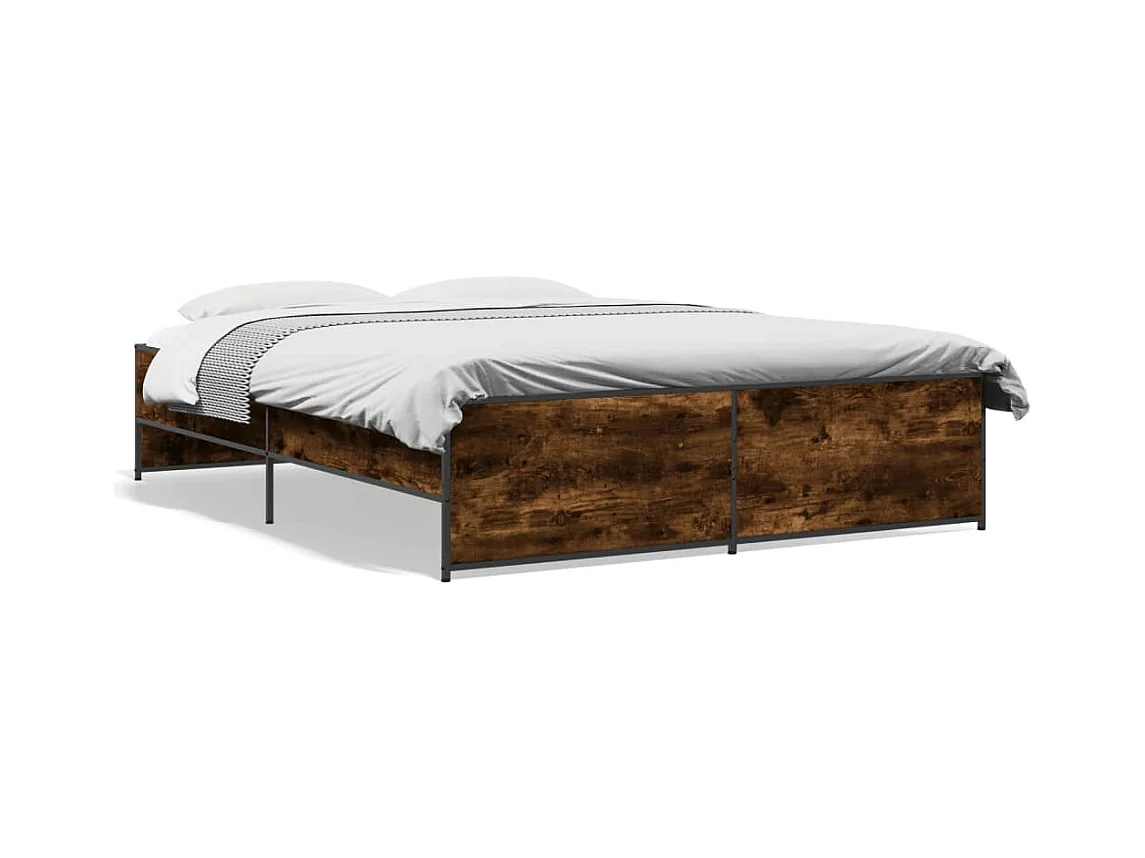 Lit double chêne fumé 150x200 cm bois d'ingénierie et métal FR59937