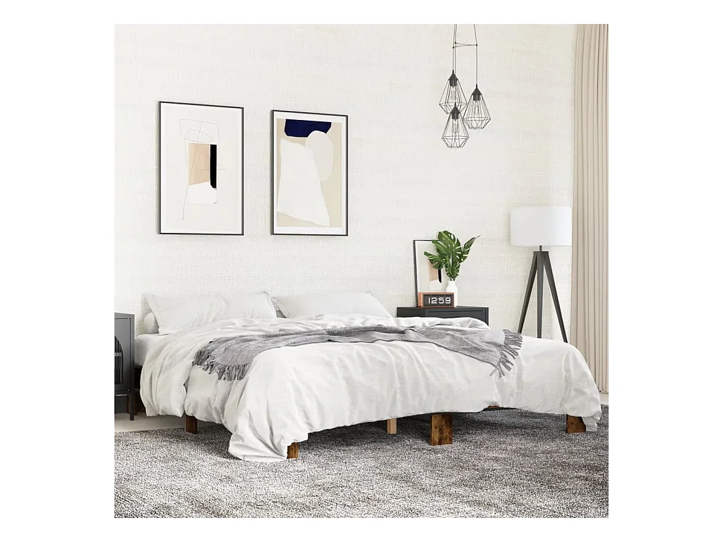 Lit double chêne fumé 200x200 cm bois d'ingénierie et métal FR31518