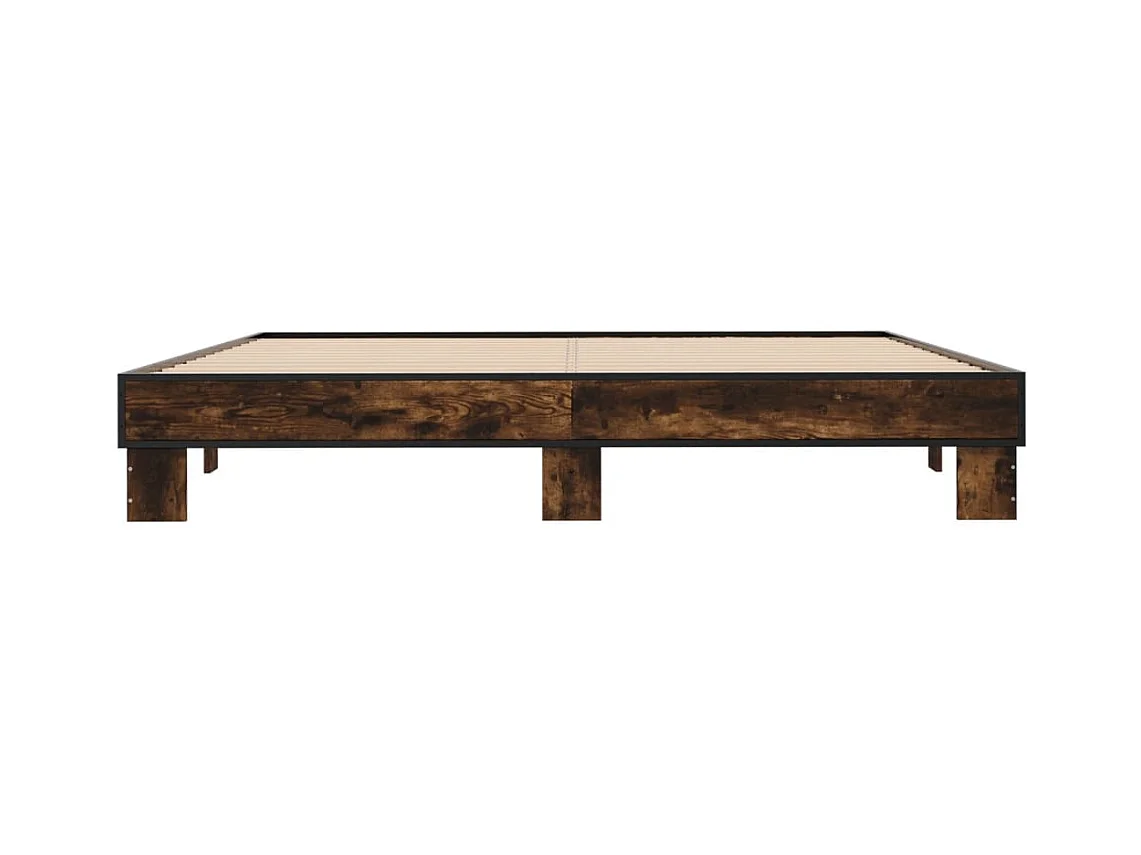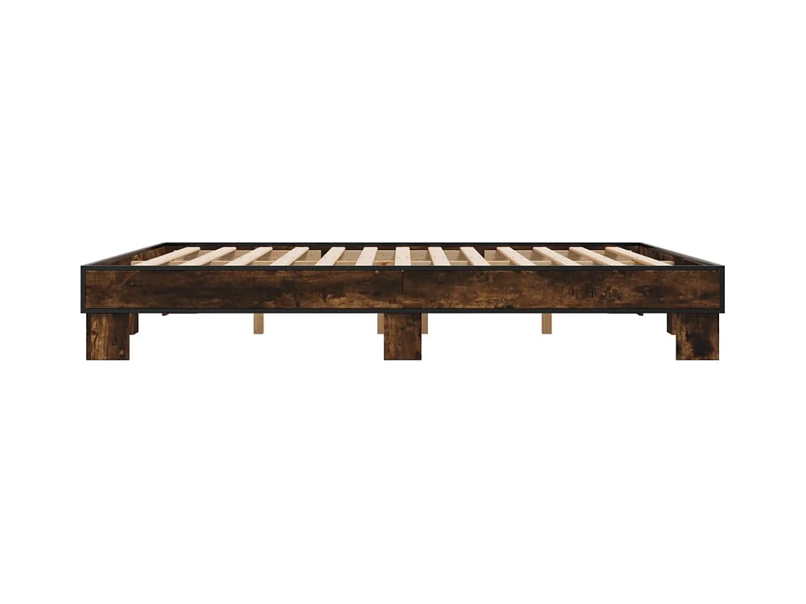 Lit double chêne fumé 200x200 cm bois d'ingénierie et métal FR70137