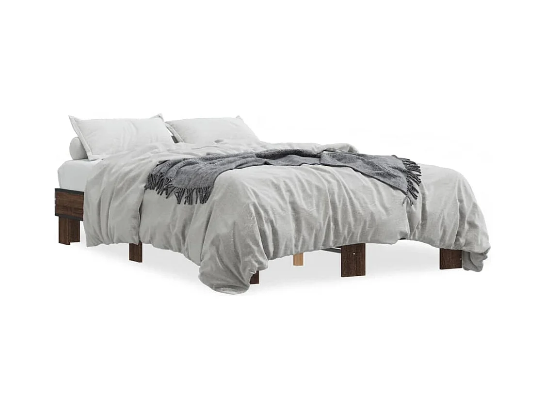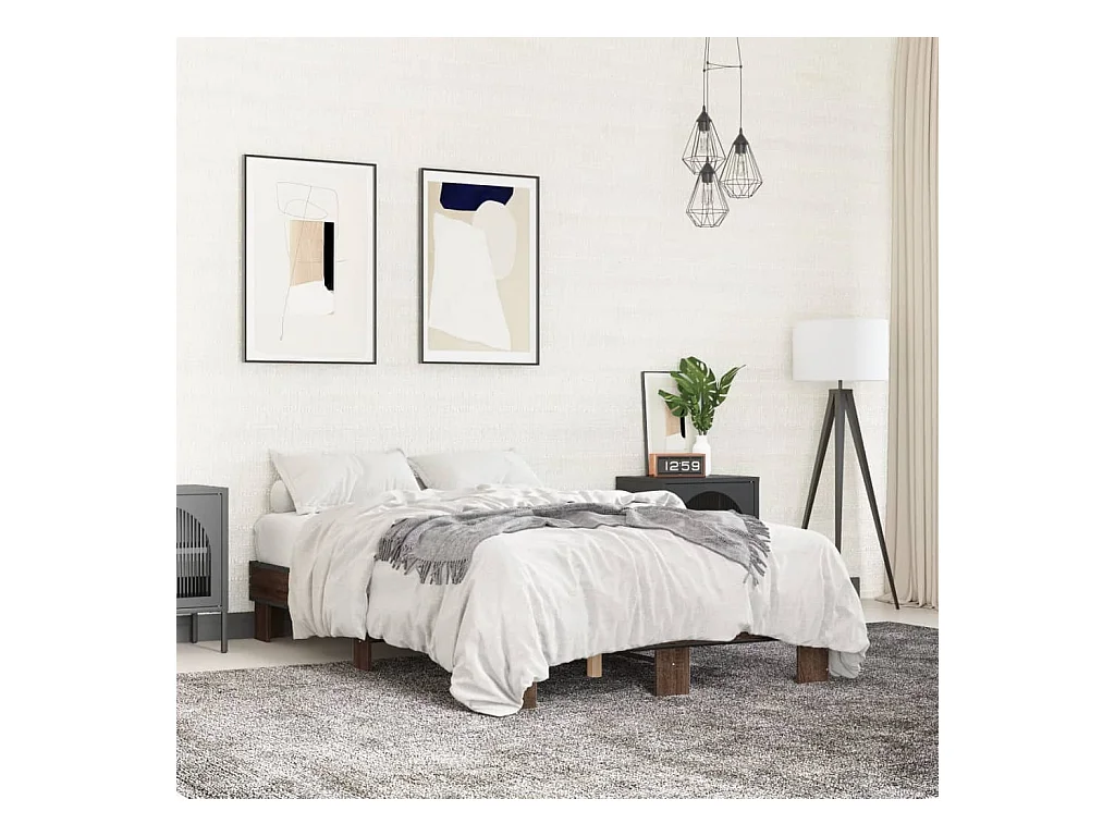 Lit double chêne marron 120x190 cm bois d'ingénierie et métal FR41686